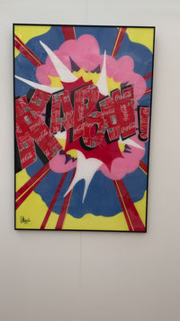 Très largement inspiré de Roy Lichenstein. Alternance de plusieurs couchez de peintures et de résines polyurethane. Découpe à la cisaille et collage de cannettes de coca cola avec une dernière couche de résine pour fermer le tableau.... Une oeuvre positive et pleine de peps pour apporter de la gaité chez soi.